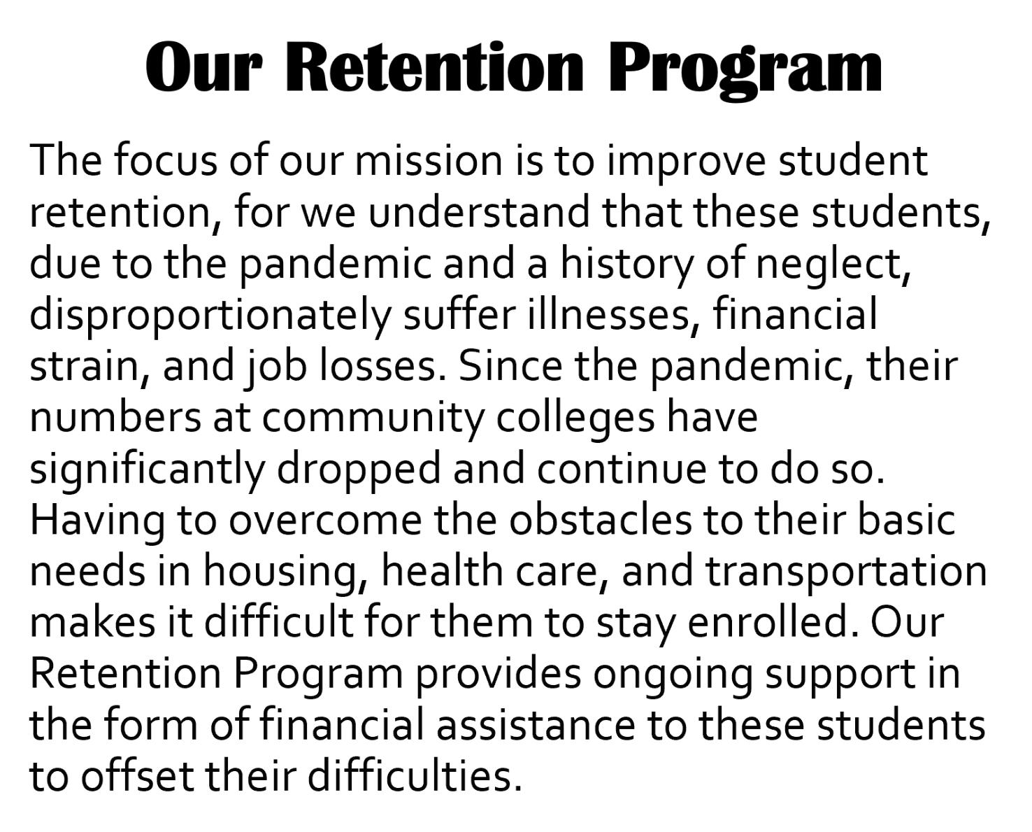 successful vocational training. Our organization, a 501c3
